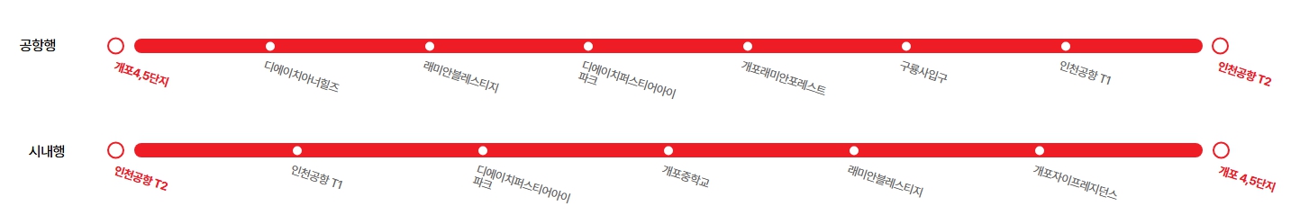 공항행은 개포4,5단지를 출발해 디에이치아너힐즈, 래미안블레스티지, 디에이치퍼스티어아이파크, 개포래미안포레스트, 구룡사입구를 거쳐 인천국제공항 제1터미널 및 제2터미널까지 운행합니다.