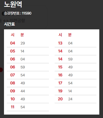 2. 6101번 공항버스 노원역 시간표 (25.5.19 ~ 5.31)