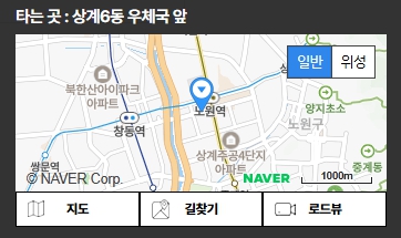 | 노원역 | 상계6동 우체국앞![]() | 노원역 7번 출구에서 도보 2분 기아자동차 앞![]() |
