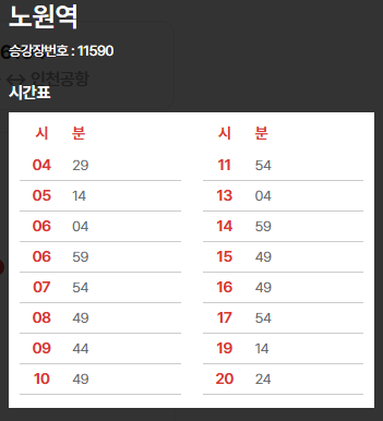 2. 6101번 공항버스 노원역 시간표