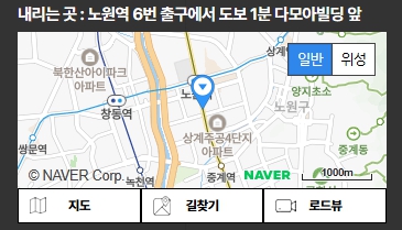 노원역 6번 출구에서 도보 1분 다모아빌딩 앞![]() |