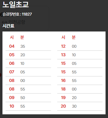 2. 6101번 공항버스 노일초교(노원초교) 시간표