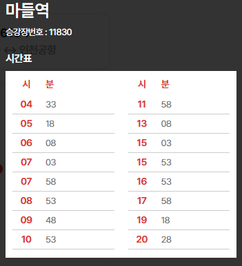| 정류장명 | 타는 곳 | 내리는 곳 |