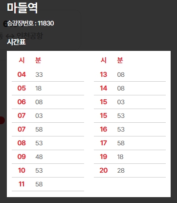 2. 6101번 공항버스 마들역 시간표 (25.5.19 ~ 5.31)