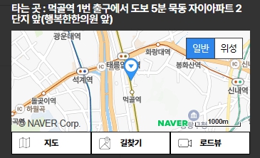 | 먹골역 | 먹골역 1번 출구에서 도보 5분 묵동 자이아파트 2단지 앞 (행복한한의원 앞)![]() |