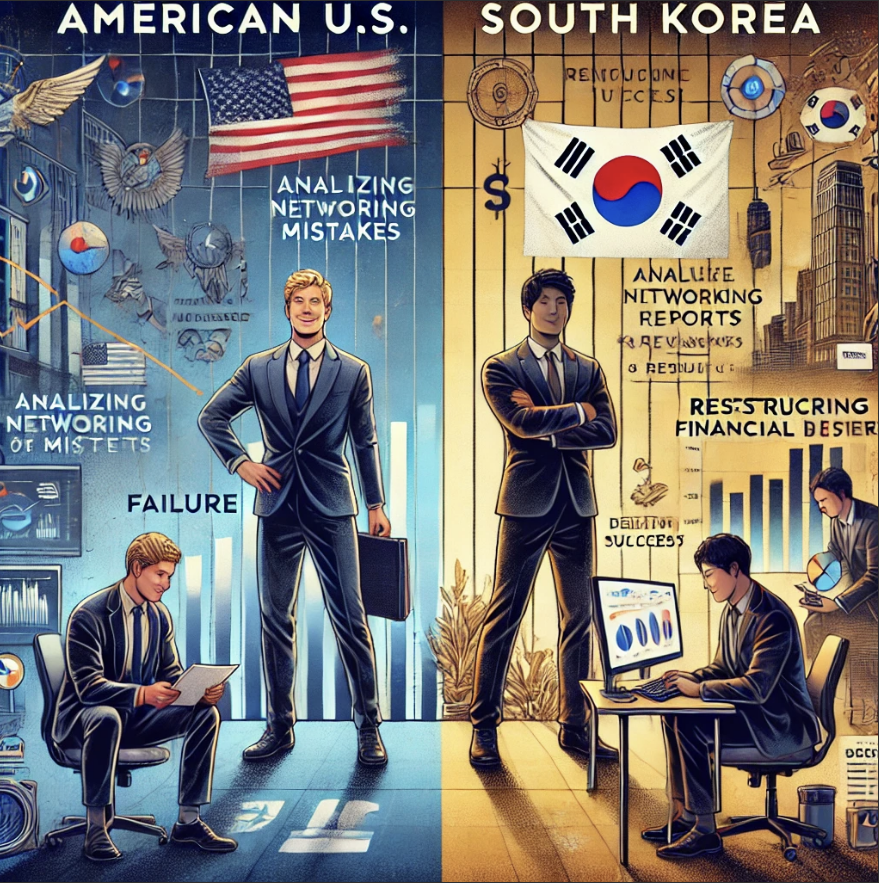 미국에서는 실패 후에도 네트워크를 통해 새로운 기회를 찾는 경우가 많다. 실리콘밸리의 창업자들은 한 번 실패하더라도 투자자, 기업 간 네트워크를 통해 재기의 기회를 얻고, 새로운 자금을 유치하여 다시 도전하는 것이 일반적이다. 예를 들어, 페이스북 창립 초기에 공동 창업자였던 숀 파커는 이전에 창업한 음악 공유 서비스 냅스터(Napster)가 실패했지만, 이후에도 실리콘밸리 네트워크를 활용해 페이스북과 에어비앤비 등 여러 유망 스타트업에 투자하며 성공적인 커리어를 이어갔다. 반면, 한국에서는 실패 후 완전히 새로운 산업에 도전하기보다는 기존 업계 내에서 새로운 기회를 찾는 방식이 더 흔하다. 예를 들어, 네이버 창업자인 이해진은 한때 검색 시장에서 어려움을 겪었지만, 기존 IT 업계에서 꾸준히 기술력을 쌓으며 결국 네이버를 한국 최대 포털로 성장시켰다. 또한, 한국의 기업가들은 기존의 대기업 혹은 금융권과 협력하여 안정적인 환경에서 다시 기회를 찾는 경향이 있다. 이는 한국의 기업 생태계가 미국처럼 개방적이지 않기 때문이며, 실패 후에도 기존의 관계망을 활용하는 것이 더 현실적인 전략이 될 수 있기 때문이다. 이처럼 미국은 네트워크를 적극 활용하며 새로운 도전에 나서는 반면, 한국은 기존 업계 내에서 새로운 기회를 모색하는 방식으로 재기를 시도하는 차이가 있다.