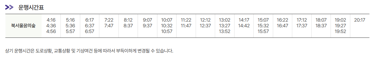 2. 6011번 공항버스 북서울꿈의숲 시간표