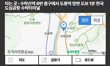 | 수락터미널 | 수락산역 6번 출구에서 도봉역 방면 도보 1분 한국도심공항 수락터미널![]() |