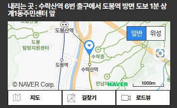 수락산역 6번 출구에서 도봉역 방면 도보 1분 상계1동주민센터 앞![]() |