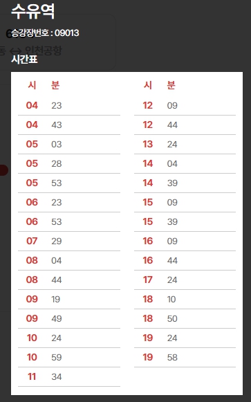 2. 6102번 공항버스 수유역 시간표 (2025년 기준)
