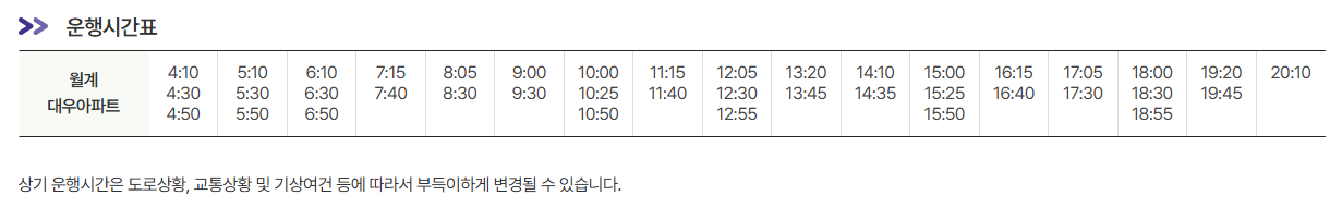 2. 6011번 공항버스 월계대우아파트 시간표