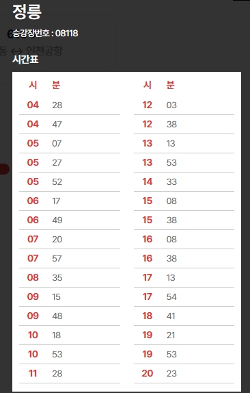 | 정류장명 | 타는 곳 | 내리는 곳 |