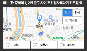 | 중화역 | 중화역 1,2번 출구 사이 조선감자뼈다귀 전문점 앞![]() |