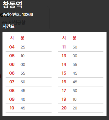 2. 6101번 공항버스 창동역 시간표