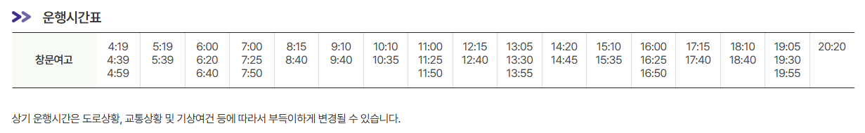자세한 시간표는 아래의 표를 참고해 주시기 바랍니다.