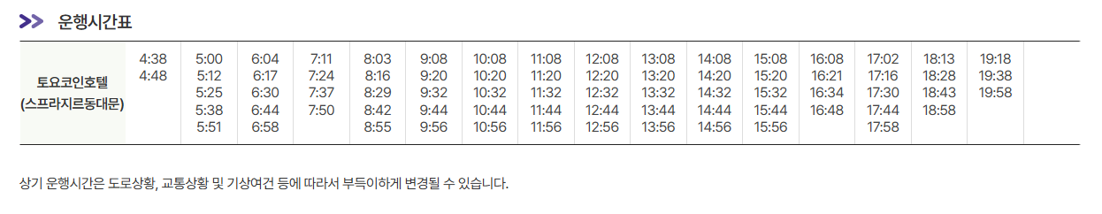 2. 6001번 토요코인호텔 (스프라지르동대문) 시간표