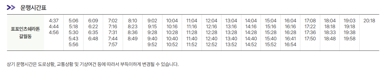 2. 6001번 포포인츠쉐라톤, 갈월동 시간표