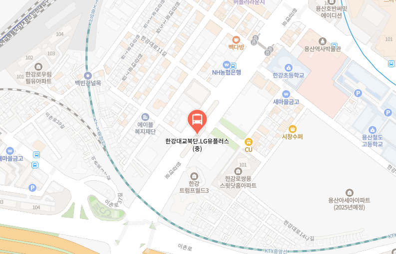 한강대교북단 LG유플러스 정류장은 1,4호선 신용산역 근처에 위치하고 있습니다. LG유플러스본사, 신용산역, 한강로가, 이촌동 근처 거주민 또는 직장들은 한강대교북단 LG유플러스 정류장에서 공항버스를 탑승하시고 하차하실 수 있습니다.
