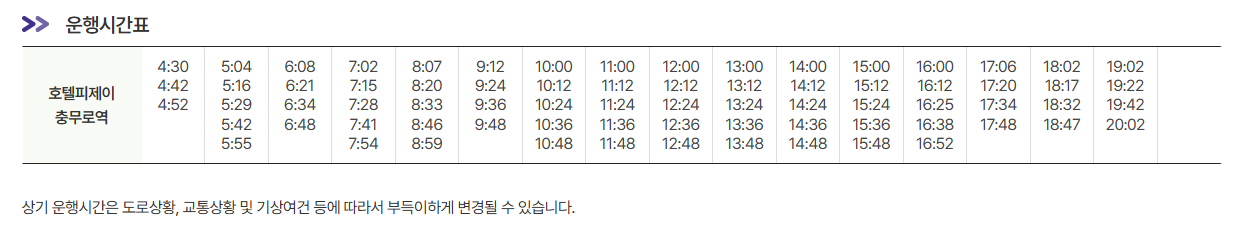 3. 6001번 공항버스 호텔PJ 충무로역 타는 곳 및 내리는 곳 위치