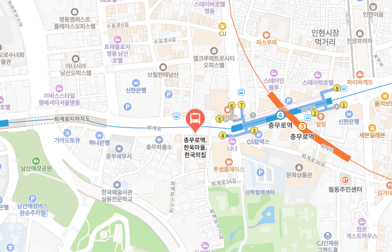 | G3호텔 (한옥마을, 퇴계로3가) | 충무로역 5번 출구에서 명동방면 80m![]() |